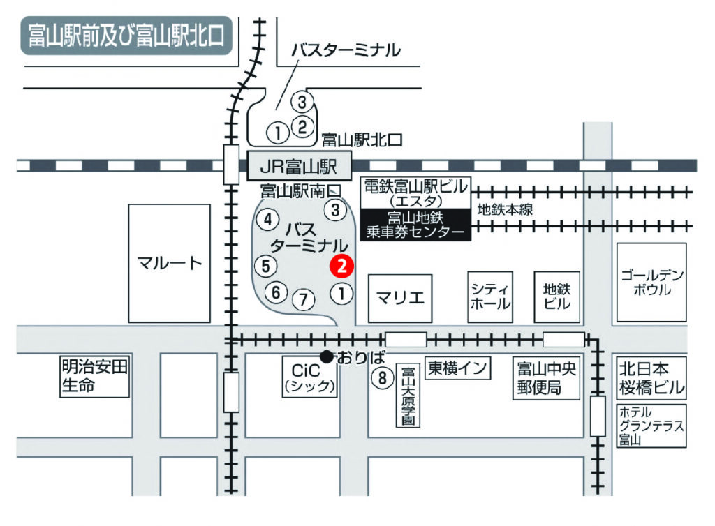 往路 : JR富山駅南口バスロータリー②(高速バスのりば前)