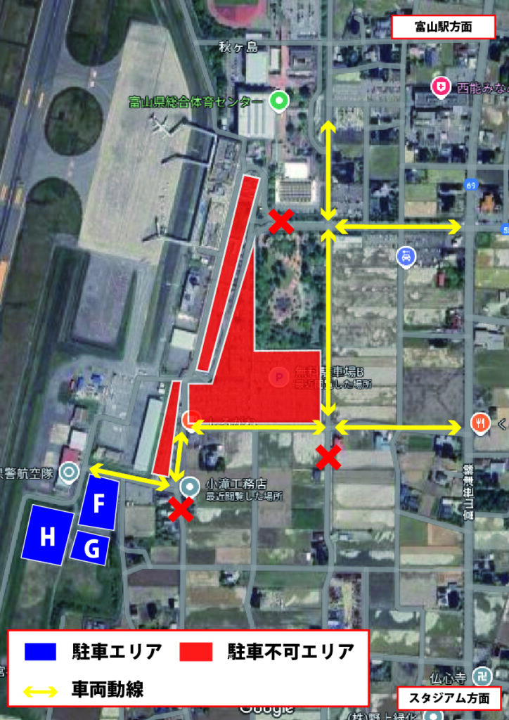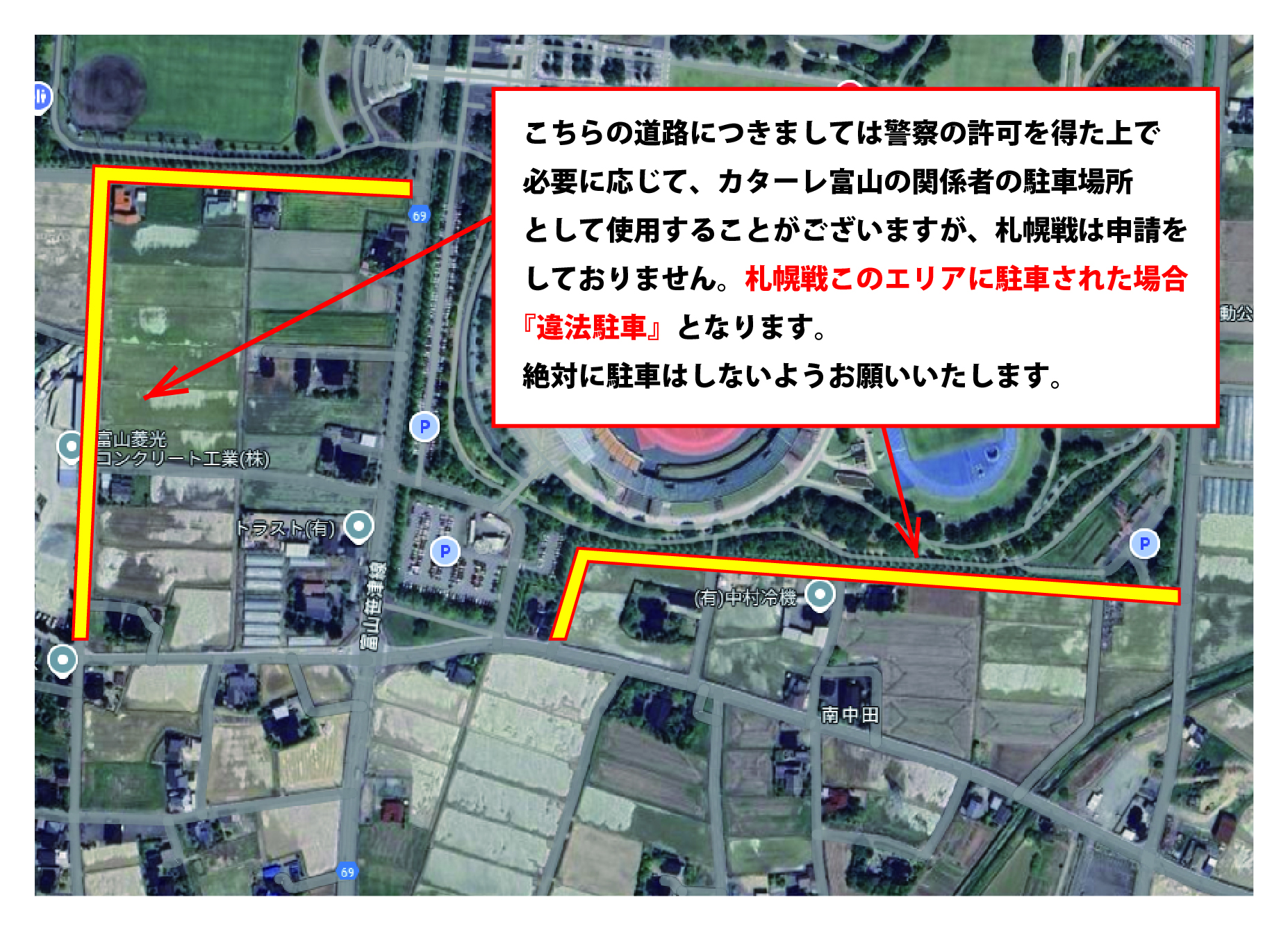 ・各臨時駐車場内での盗難・事故等の責任はカターレ富山では、一切責任を負いません。