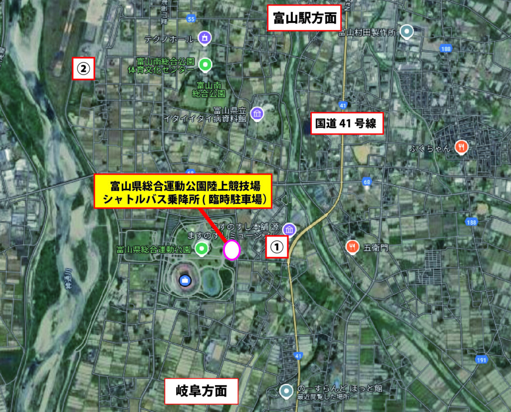 復路 : 富山県総合運動公園西側臨時バス停留所