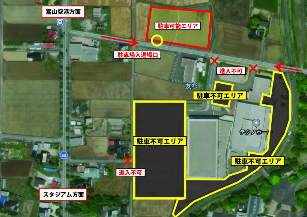 ・各臨時駐車場内での盗難・事故等の責任はカターレ富山では、一切責任を負いません。