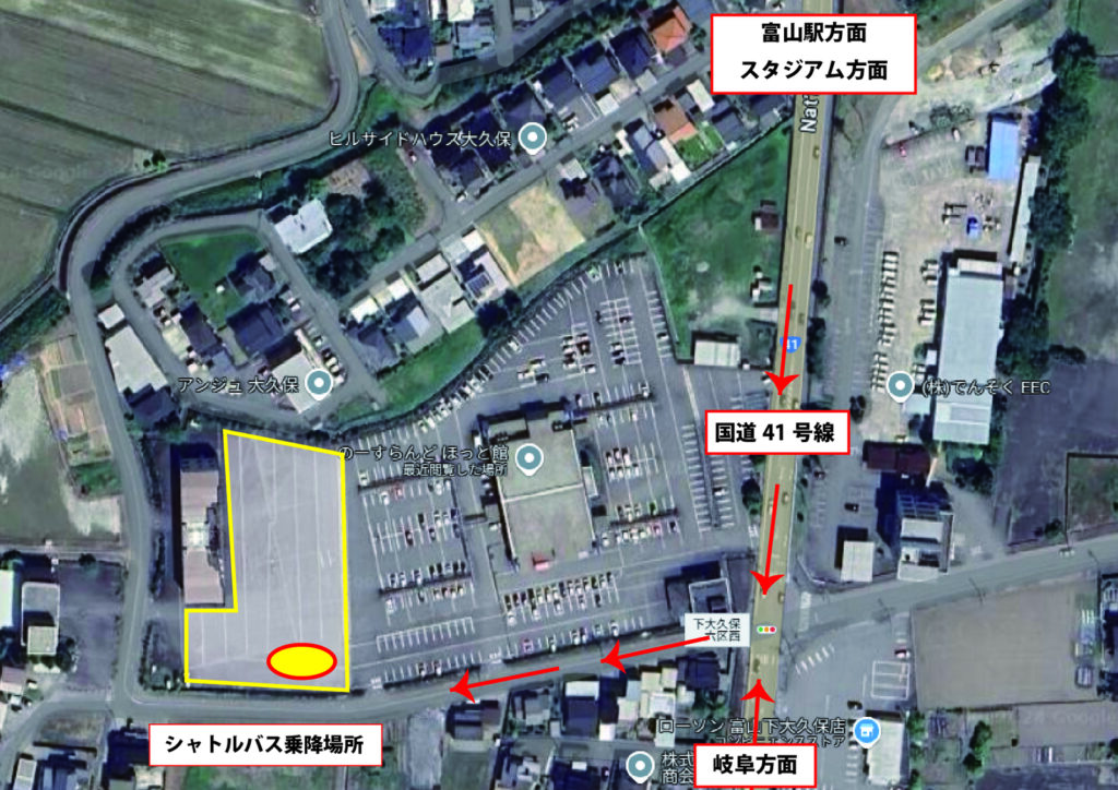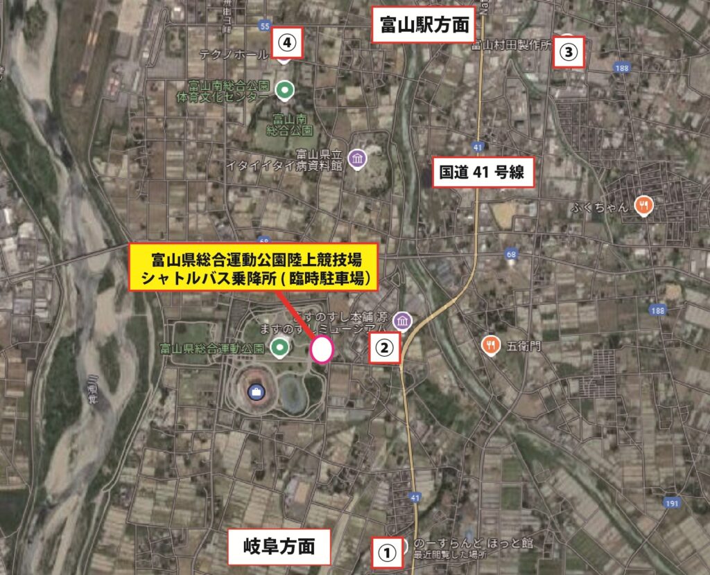 ・復路 : 富山県総合運動公園西側臨時バス停留所