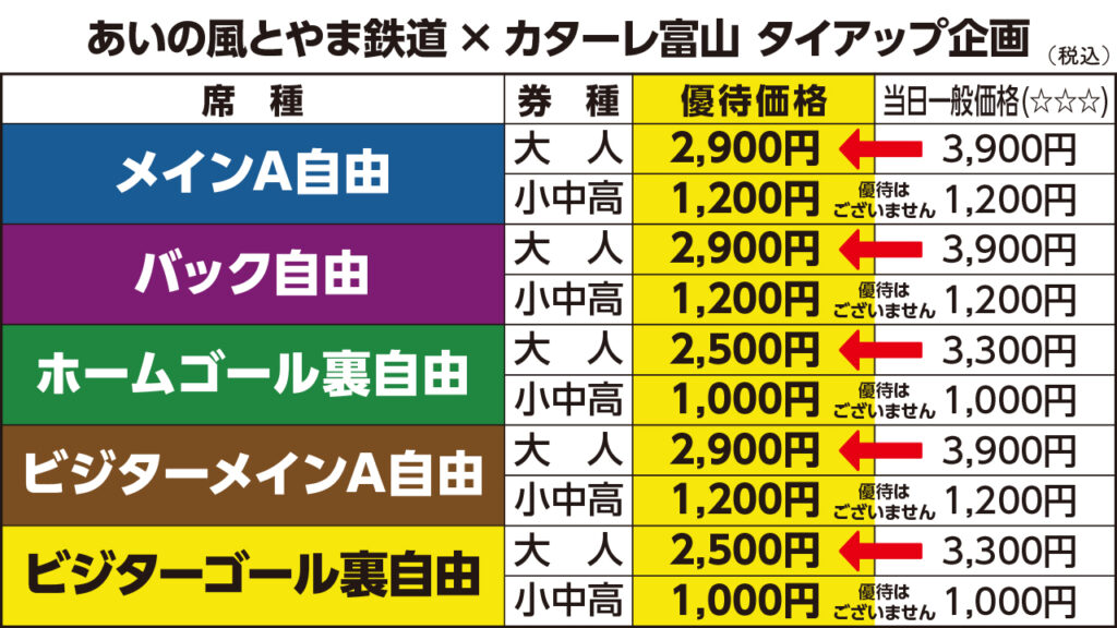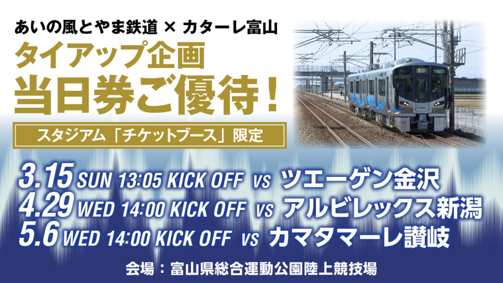 あいの風とやま鉄道×カターレ富山 タイアップ企画「当日券ご優待」