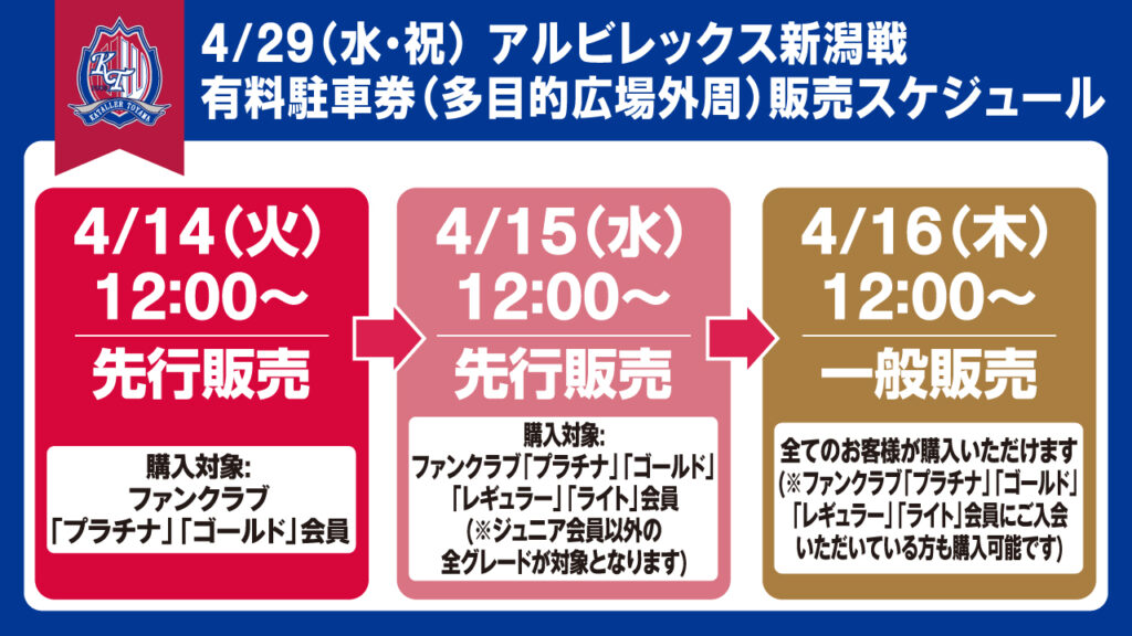 ・本試合当日は無料の臨時駐車場も増設いたします。詳しくはこちらをご覧ください。
