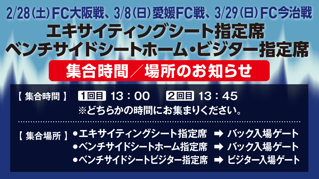 エキサイティングシート指定、ベンチサイドシートホーム/ビジター指定席 集合時間/場所