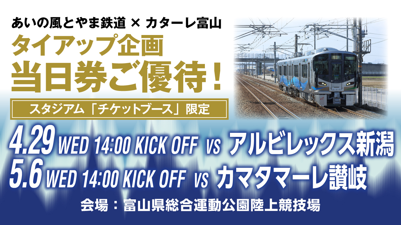 「あいの風とやま鉄道」「IRいしかわ鉄道」「えちごトキめき鉄道」に乗ってカターレ富山のホームゲームをお得に観戦してください!