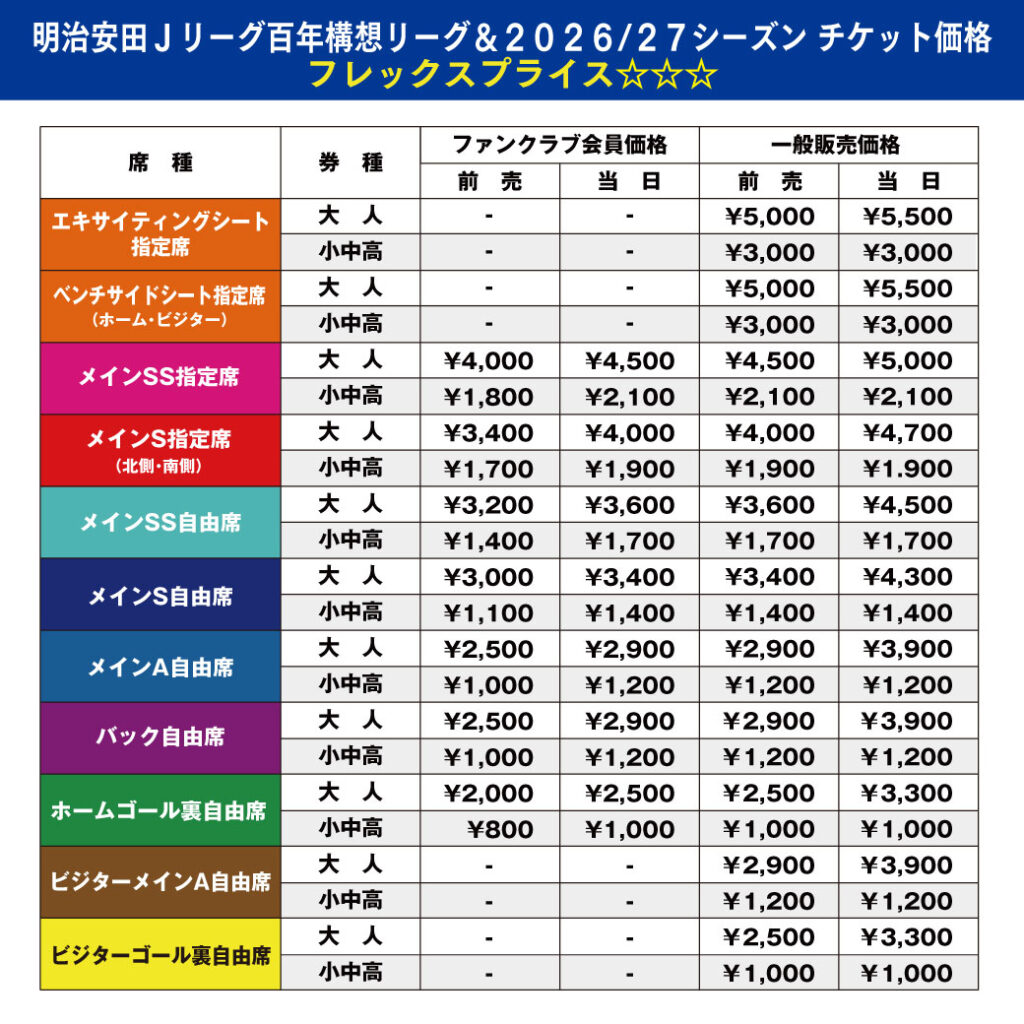 ※「ファンクラブ会員価格」はJリーグチケットでのみ販売しています