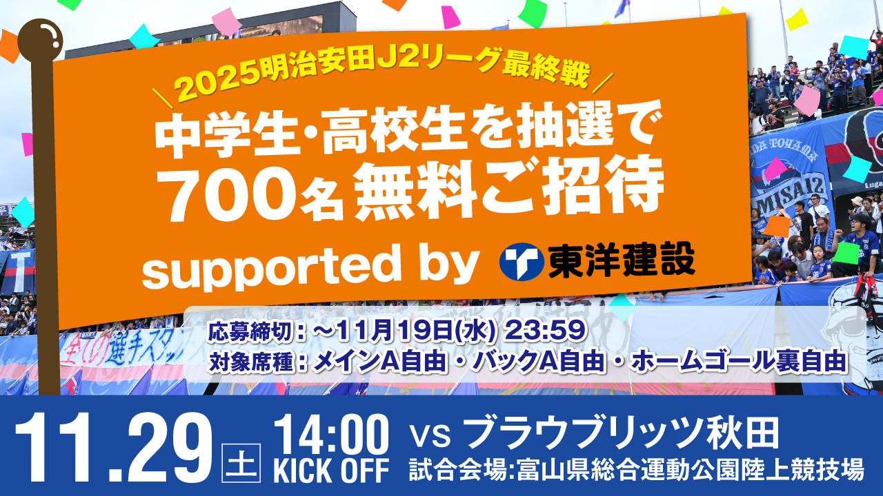富山県内在住、2025年度小学生の皆さんはJ2リーグのカターレ富山ホームゲームを無料で観戦できます。
