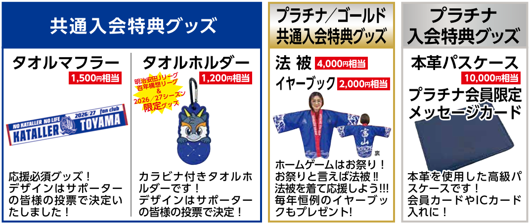 1月11日(日)以降にお申し込みされたお客様は、カターレ富山ホーム開幕戦までに入会セットをお届けできない可能性がございます。