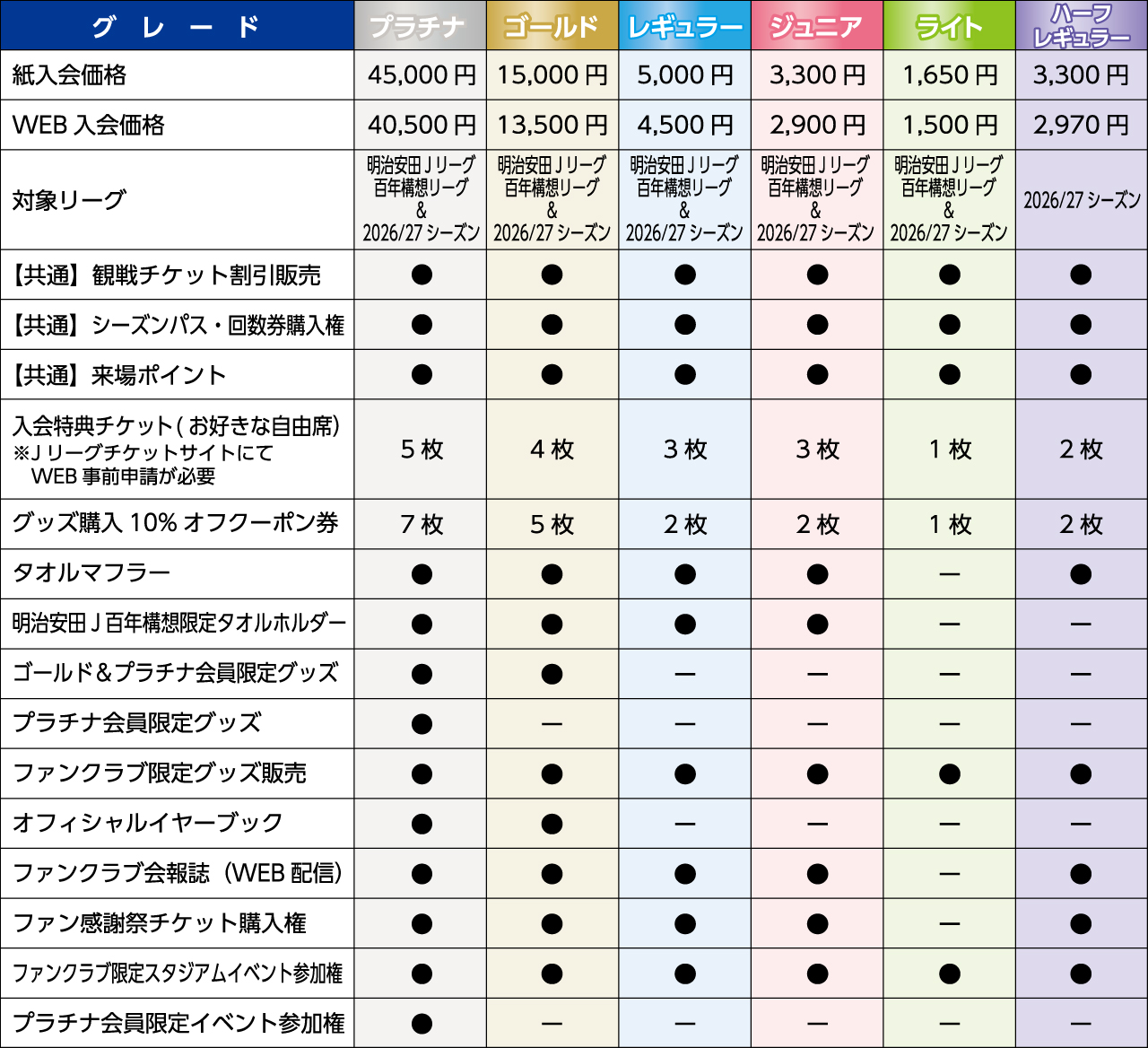 ・会員メルマガ(選手移籍関係など)、サポートショップサービスは明治安田Jリーグ百年構想リーグより廃止となります
