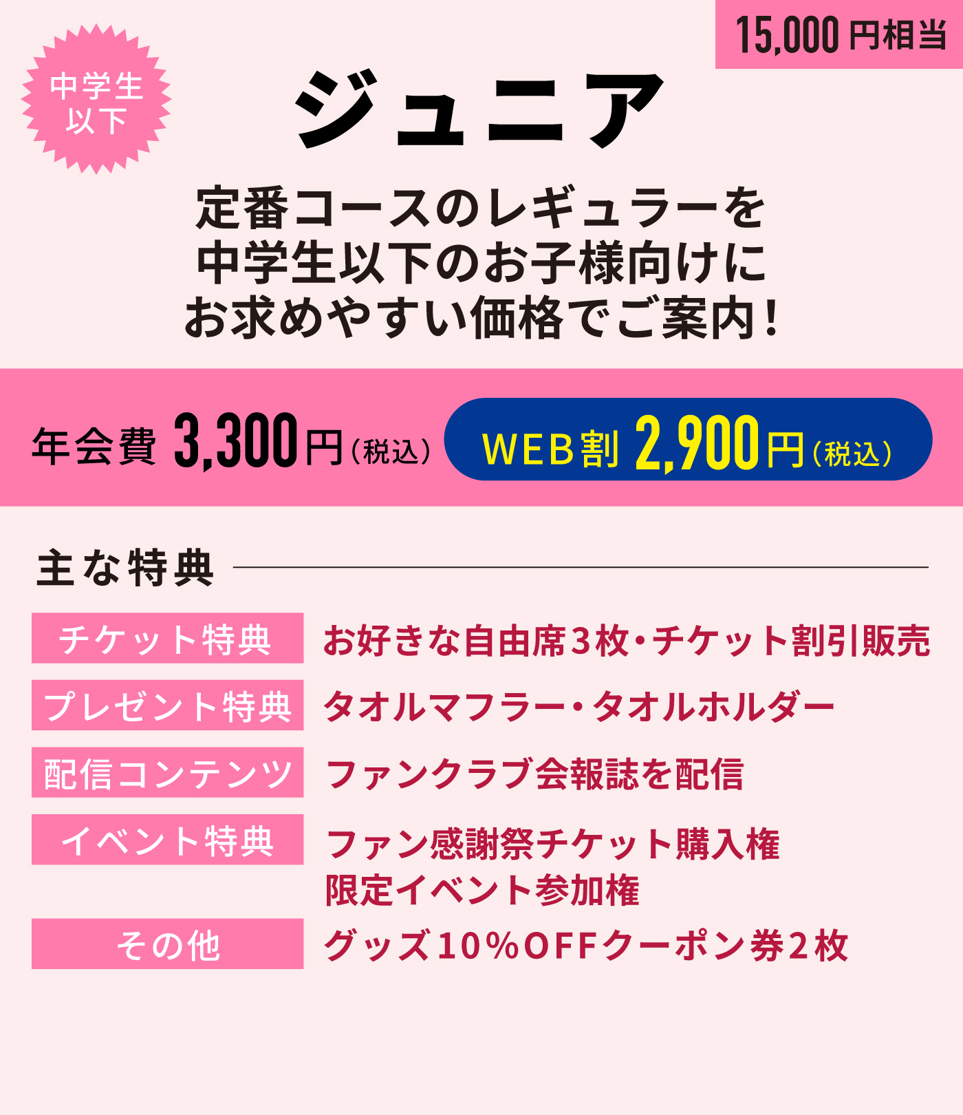 ・招待チケットの利用有無、会員イベントが万が一実施できなかった場合を 問わず払い戻しはいたしません