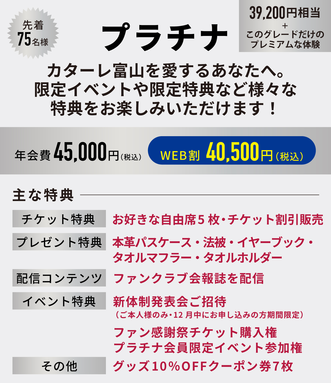 ・個人情報の取り扱いにつきましては、オフィシャルファンクラブ会則に則り、 株式会社カターレ富山で適切にお取り扱いします