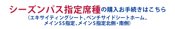 ・「シーズンパス指定席種(エキサイティングシート、ベンチサイドシートホーム、メインSS指定、メインS指定北側・南側)の購入手続きはこちら」よりご自身でお手続きください。