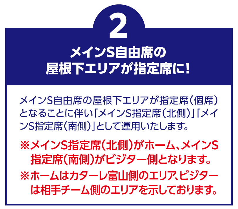 ※2025シーズンに「メインS自由席」を購入されていたお客様向けに「メインS指定席北側・南側」は確保しておりません。必ずご自身でお手続きください。