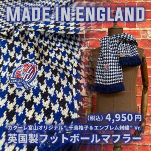 デザインから生産まで一貫して“本場England製”。英国国内での生産はもちろん、現地の業界経験豊富なデザイナーがカターレのためにデザイン製作してくれた、THE本物!のフットボールマフラーとなっております。