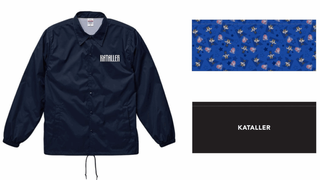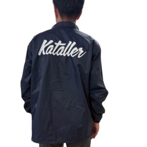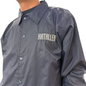 胸元には「KATALLER」の刺繍、背面には「KATALLER」のプリントを施した、シンプルかつ存在感あるナイロンコーチジャケット。軽量で防風性にも優れており、観戦やお出かけなど、幅広いシーンで活躍する定番アイテムです。