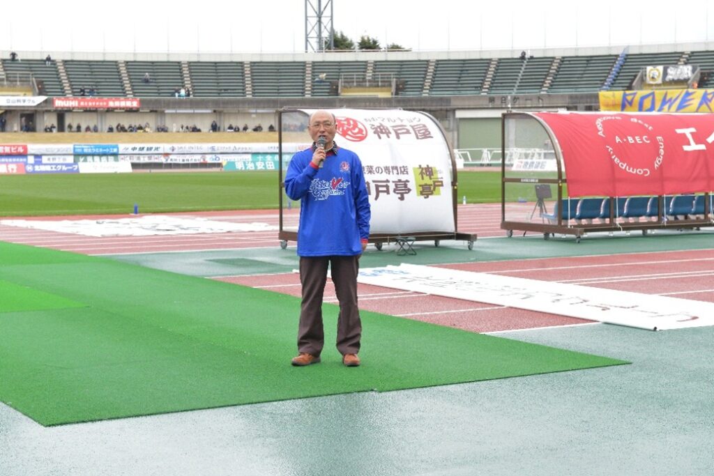 マッチスポンサーのオダケホーム株式会社 代表取締役会長 小竹 茂樹 様より試合前ご挨拶ならびにキックインセレモニーを実施いたします。