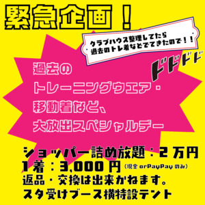 【過去のトレーニングウエアなどワゴンセール】