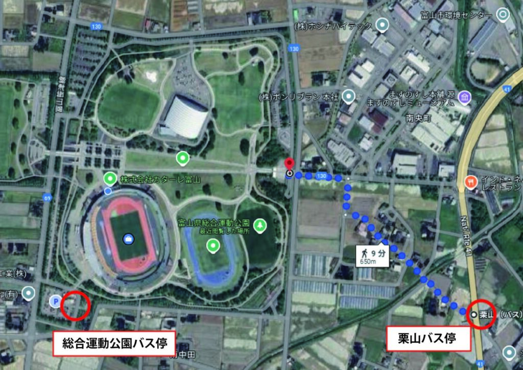 復路 : 富山県総合運動公園西側臨時バス停留所