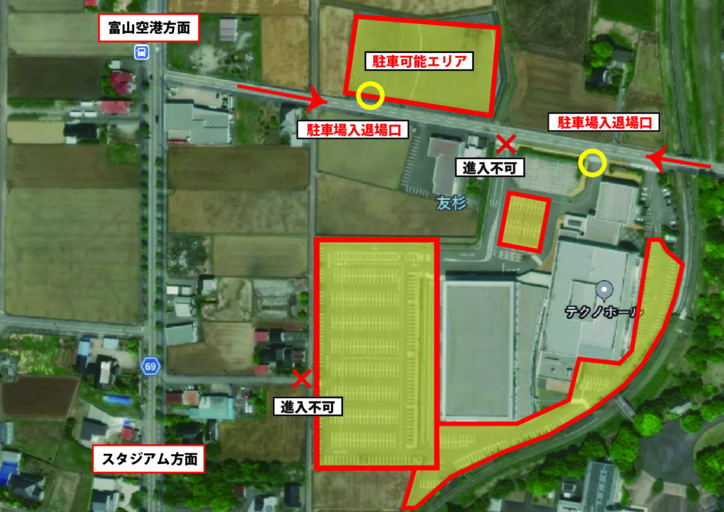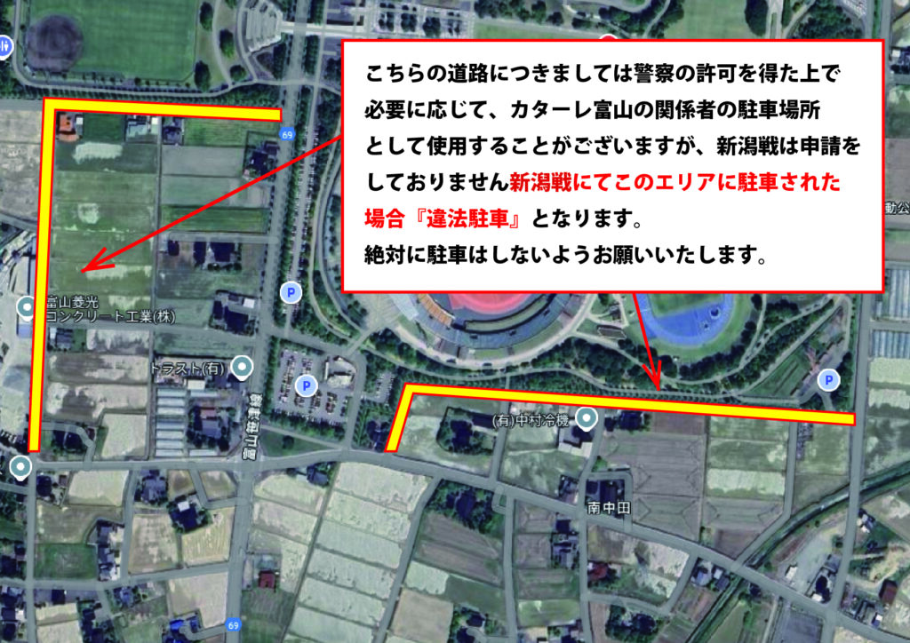 ・各臨時駐車場内での盗難・事故等の責任はカターレ富山では、一切責任を負いません。