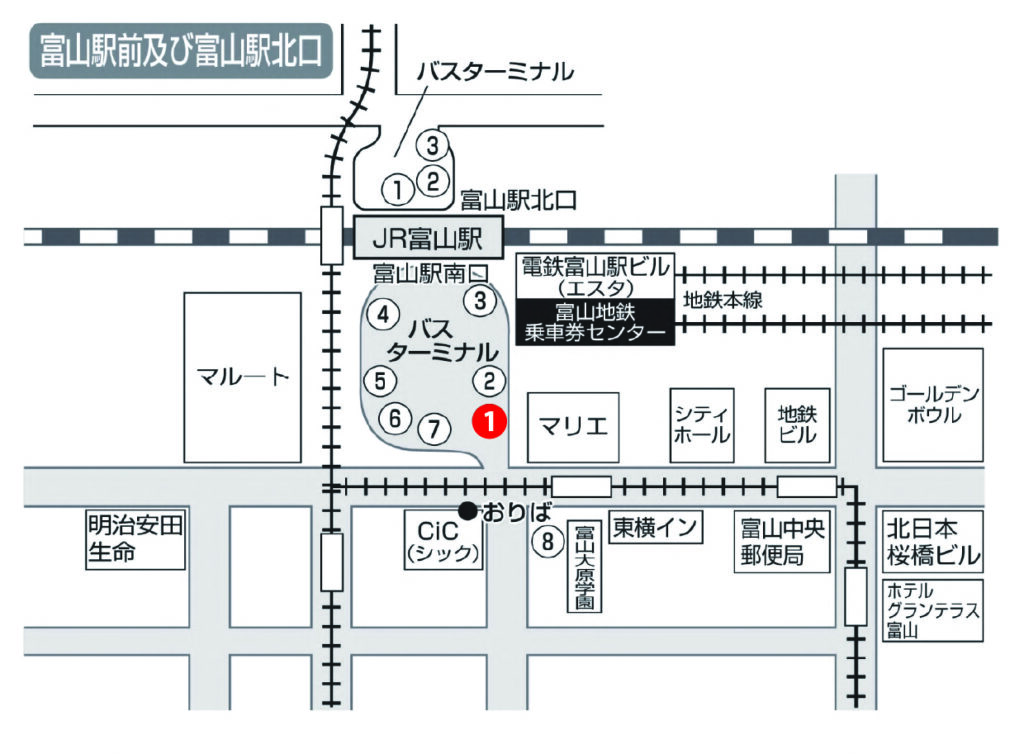 往路 : JR富山駅南口バスロータリー①(高速バスのりば前)