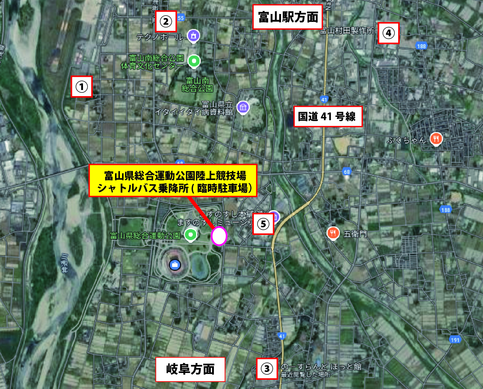 復路 : 富山県総合運動公園西側臨時バス停留所