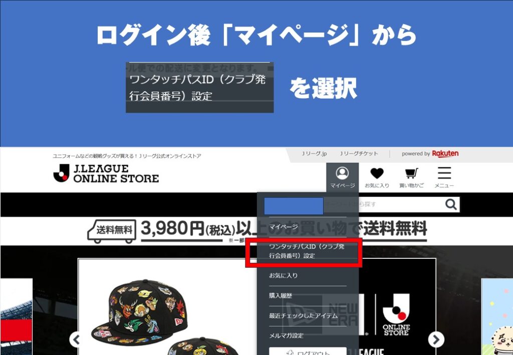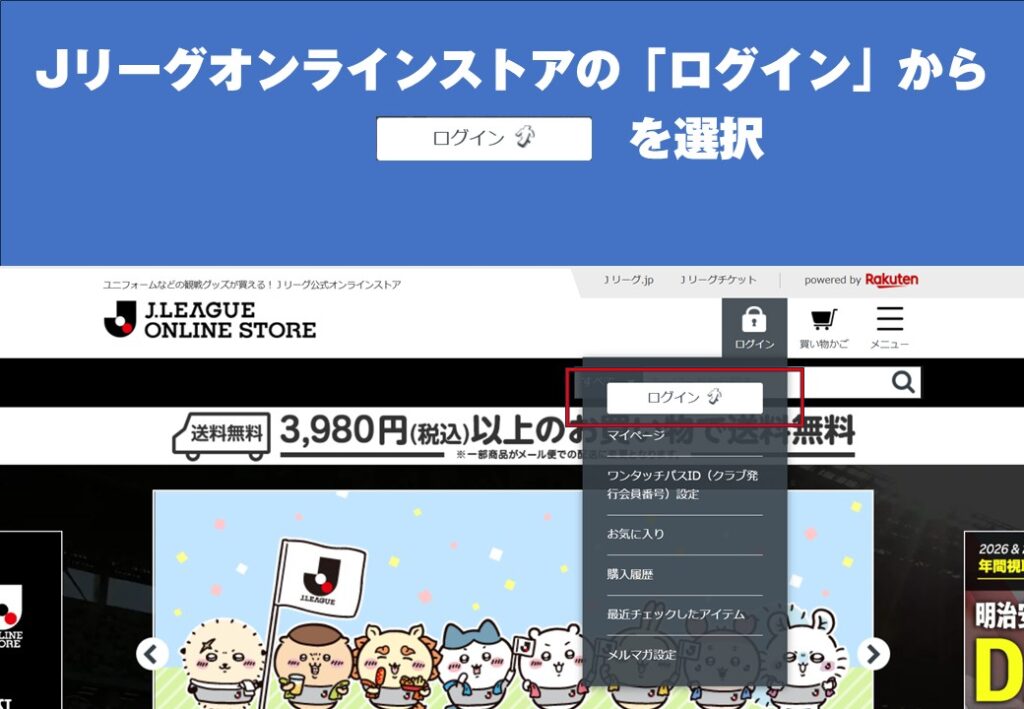 ※Jリーグオンラインストア会員マイページとは異なりますので、再度JリーグIDでログインが必要です。