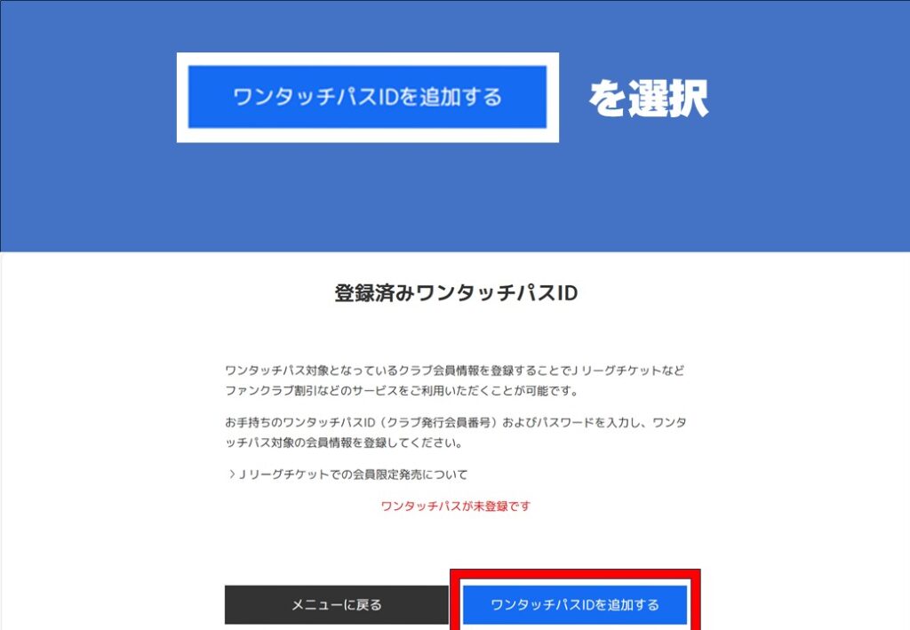 ワンタッチパスID(ファンクラブ会員ID)とJリーグIDの連携方法について