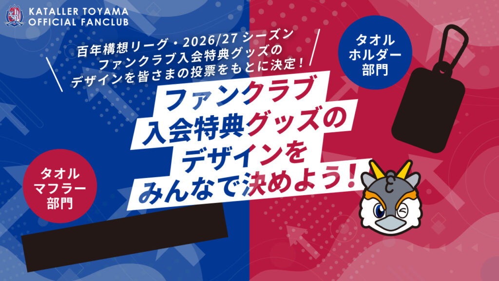 百年構想リーグ・2026/27シーズンのファンクラブ入会特典グッズのデザインをファン、サポーターの皆様の投票をもとに決定いたします!みんなで決めたファンクラブ入会特典グッズでさらにカターレ富山を応援しよう!