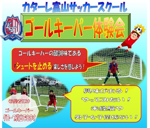 『カターレ富山サッカースクール ゴールキーパー体験会』を実施することとなりましたので、お知らせいたします。