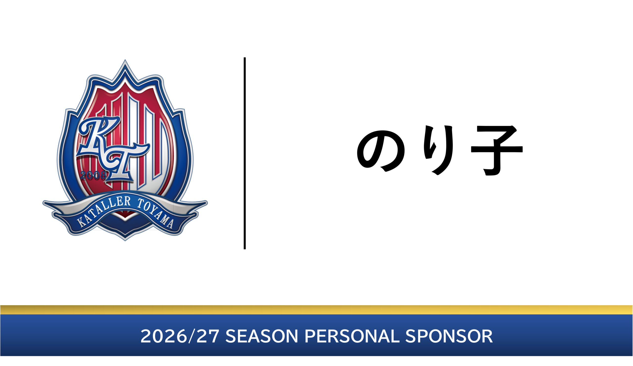 カターレ富山は、のり子 様と2026/27シーズン 個人スポンサーの契約を締結しご支援いただくこととなりましたので、下記の通りお知らせいたします。