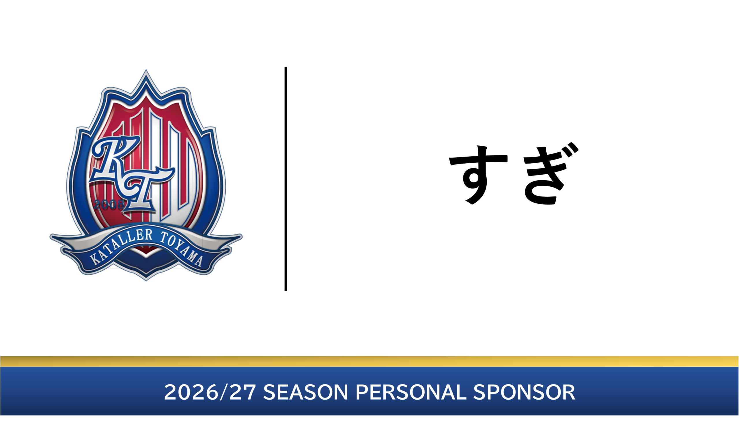2026/27個人スポンサー 応援メッセージ vol.3 カターレ富山は、すぎ 様と2026/27シーズン 個人スポンサーの契約を締結しご支援いただくこととなりましたので、下記の通りお知らせいたします。 契約締結に関するコメント(応援メッセージ) 今年も富山一丸で頑張りましょう! No Limits!!!