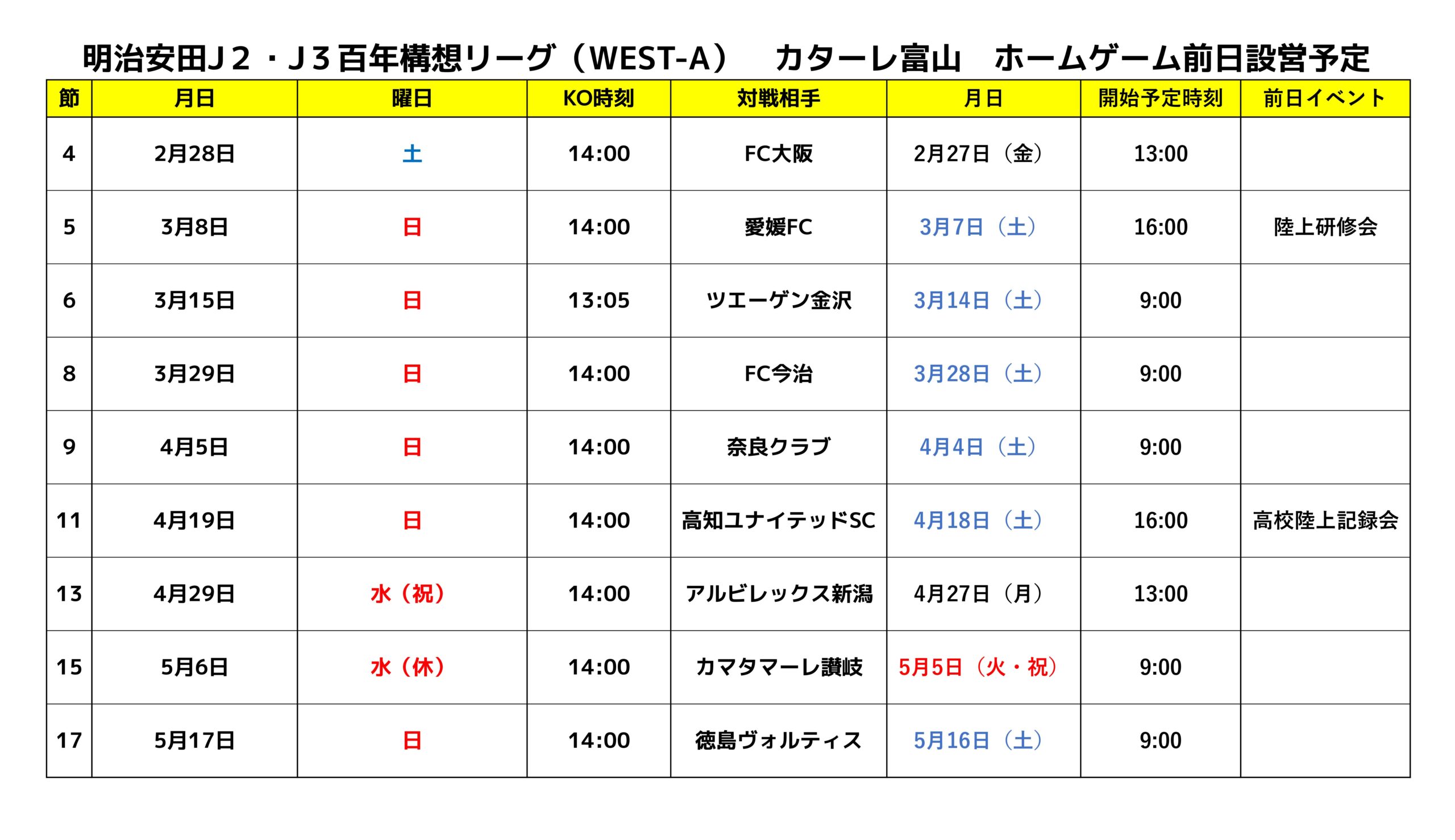 ・その都度、カターレ富山公式Xなどで事前告知します。